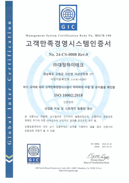 고객만족경영시스템인증서