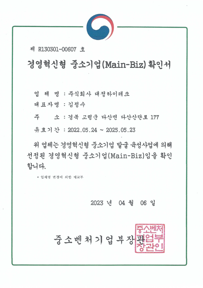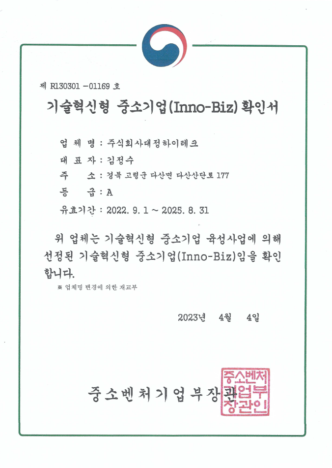 최고의 제품을 제공하기 위해 끊임없는 노력하는 (주)대정하이테크입니다.